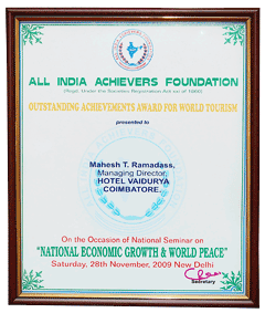 | Awards ceremony of NATIONAL ECONOMIC GROWTH & WORLD PEACE - ALL INDIA ACHIEVERS FOUNDATION at New Delhi on 28th Nov 2009. |