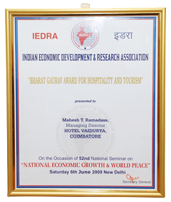| Awards ceremony of INDIAN ECONOMIC DEVELOPMENT & RESEARCH ASSOCIATION [IEDRA] at New Delhi on 6th June 2009. |